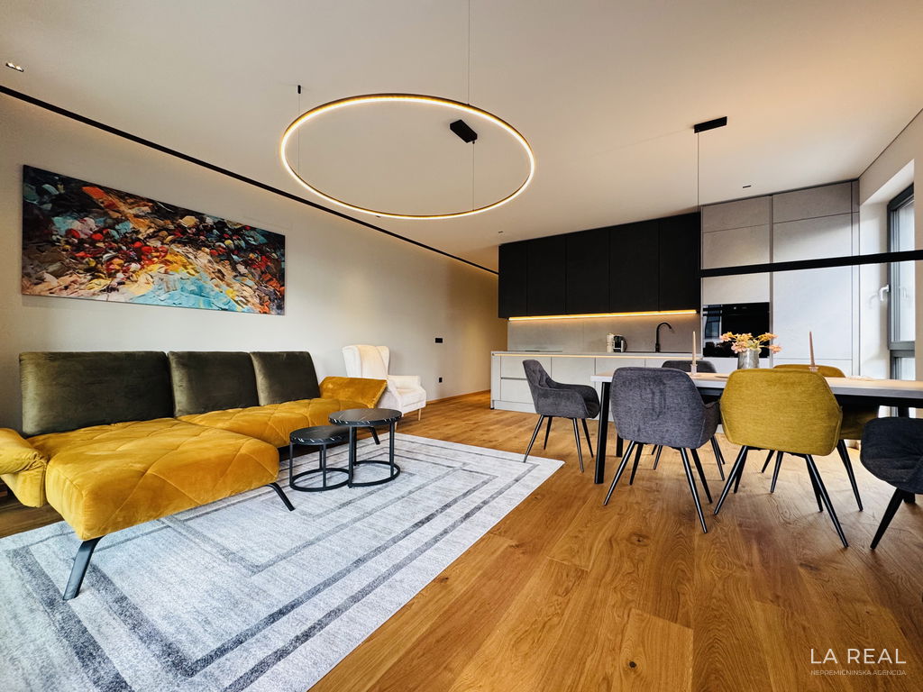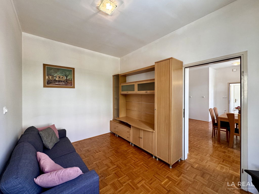 - Razporeditev: predsoba/hodnik, dnevnobivalni prostor, dve spalnici, kopalnica, balkon z dostopom iz skupnih prostorov, kletna shramba