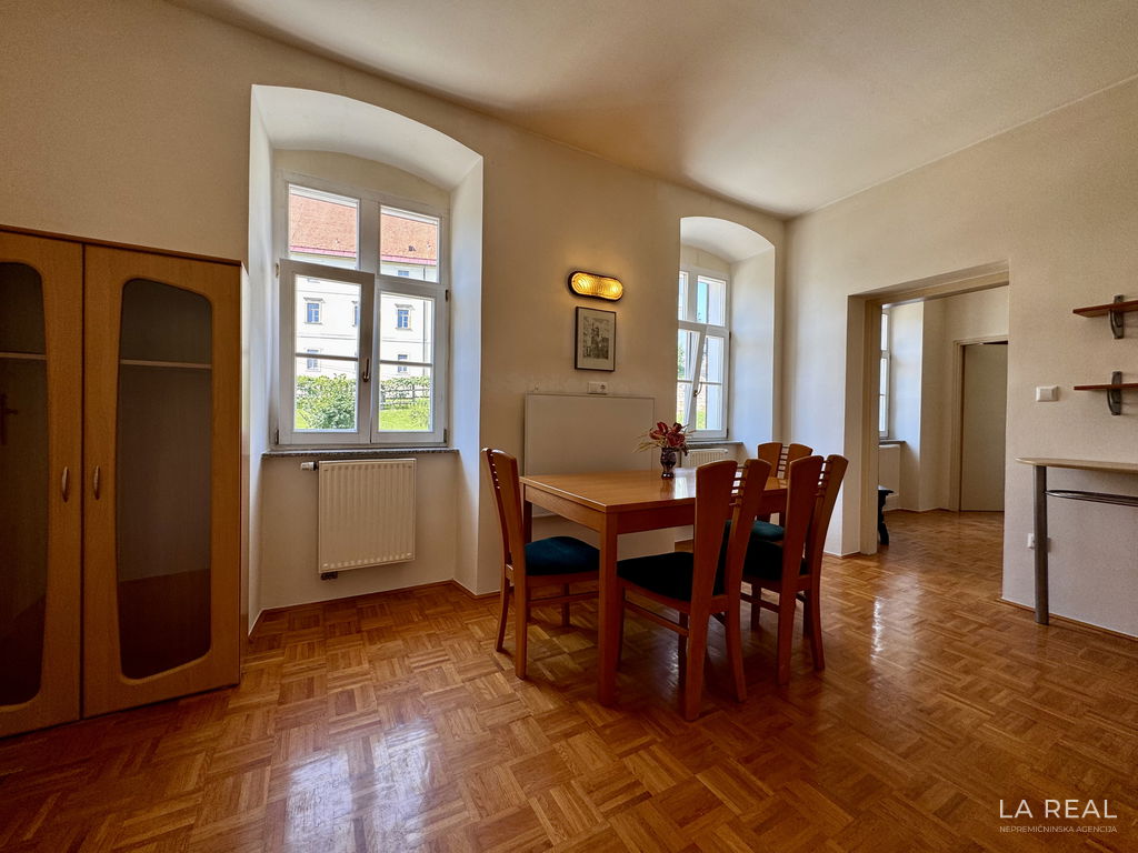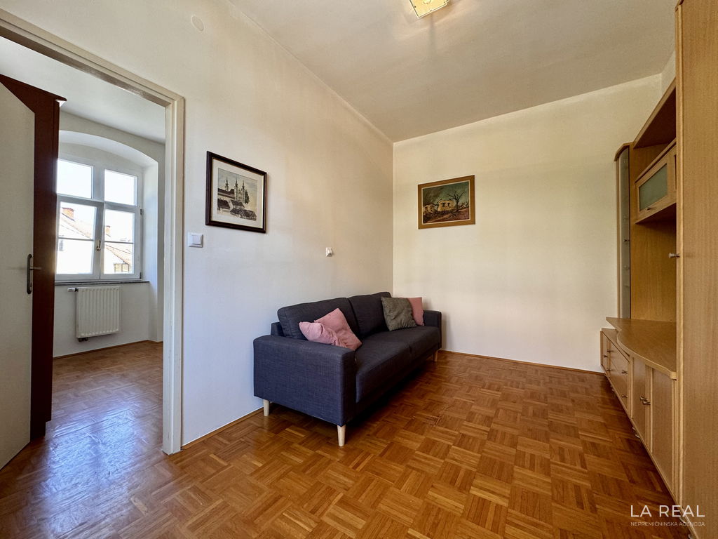 Sveta Trojica v Slovenskih goricah: V centru Svete Trojice je na prodaj staromeščansko 3-sobno stanovanje, v izmeri 59,9 m2. Stanovanje je zelo svetlo in ponuja krasne poglede na cerkev in trg. Stavba je vzdrževana, leta 2004 je bila zamenjana električna napeljava v stanovanju, sanirana streha in fasada objekta. Stanovanje je ogrevano z radiatorji in dodatno z IR panelom.