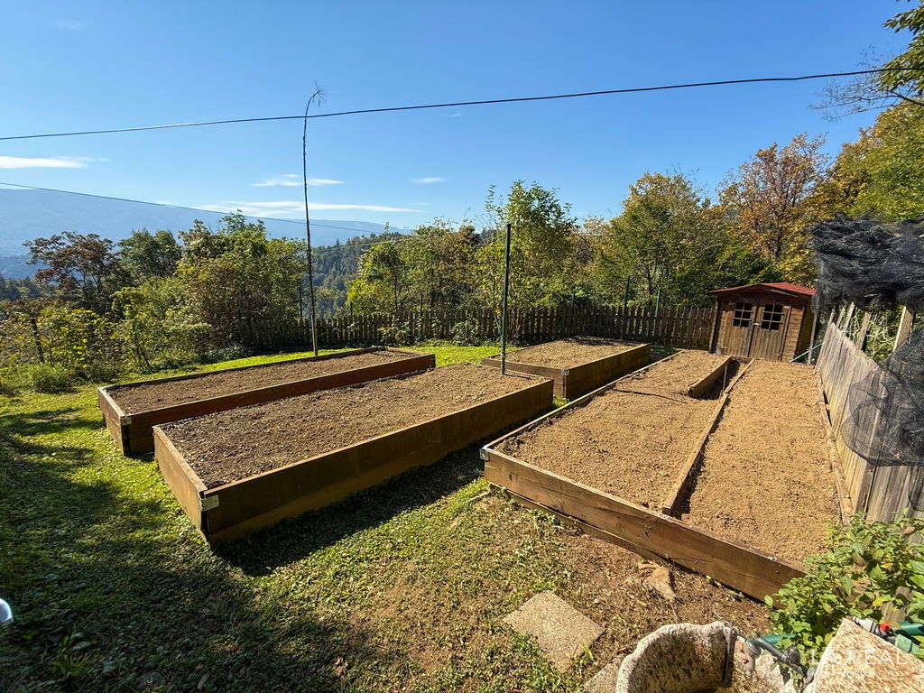 Okolica hiše je sončne lege in obsega trato z ravninskim delom, približno 400 m2 vrtov (4 vrtovi), caa 600 m2 sadovnjaka, cca 5000 m2 gozda in vrt z visokimi gredami, pripravljen na sajenje vaših najljubših rastlin. Posestvo je obdelano na ekološki način.