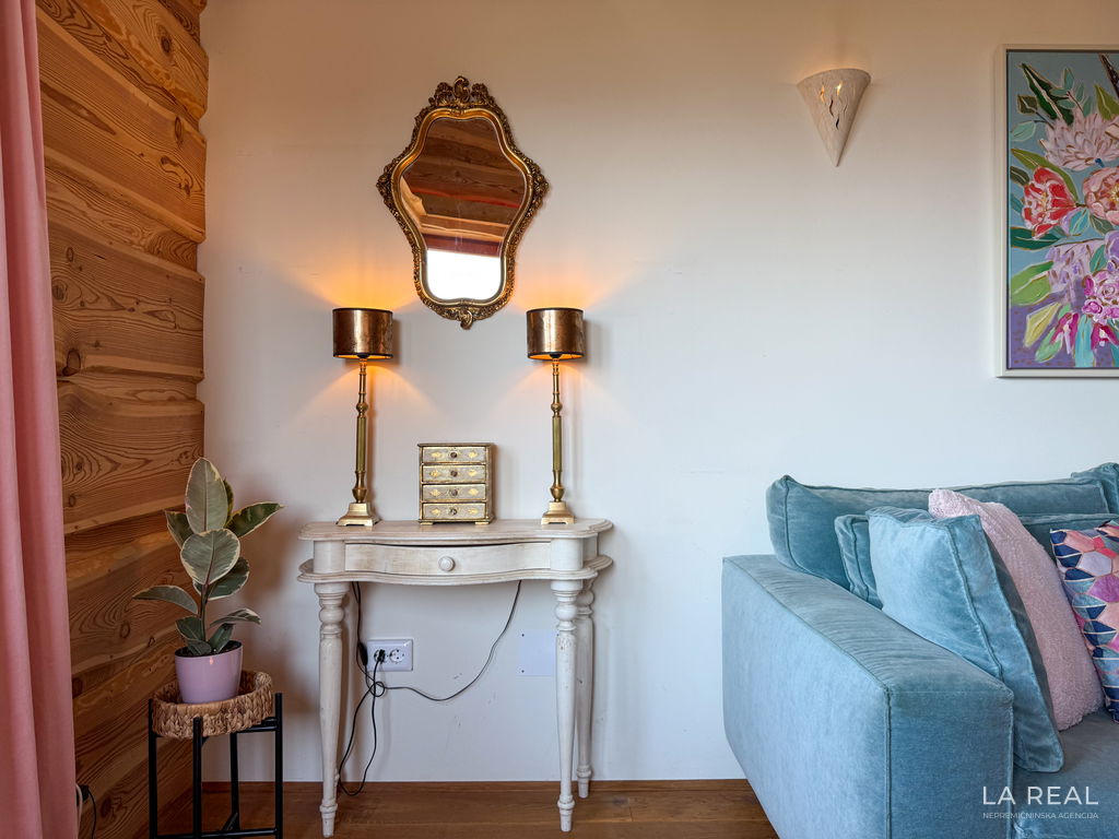 Next to the house is a large terrace (80m2) with a massage pool and a combined wooden/glass fence that offers a beautiful view. The terrace is mostly covered (60 m2) and closed with electric blinds.