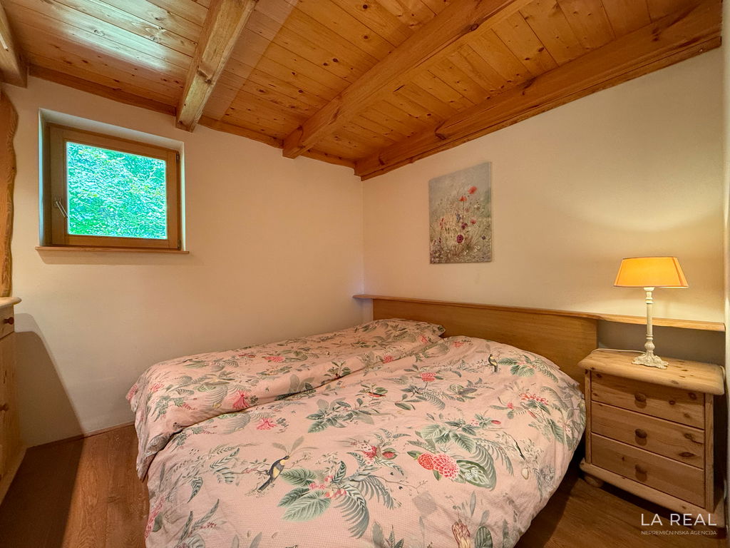 Spalnica je lesena, delno izdelana iz Cemprinovega lesa. Tla so, prav tako kot v dnevnem prostoru, hrastova.