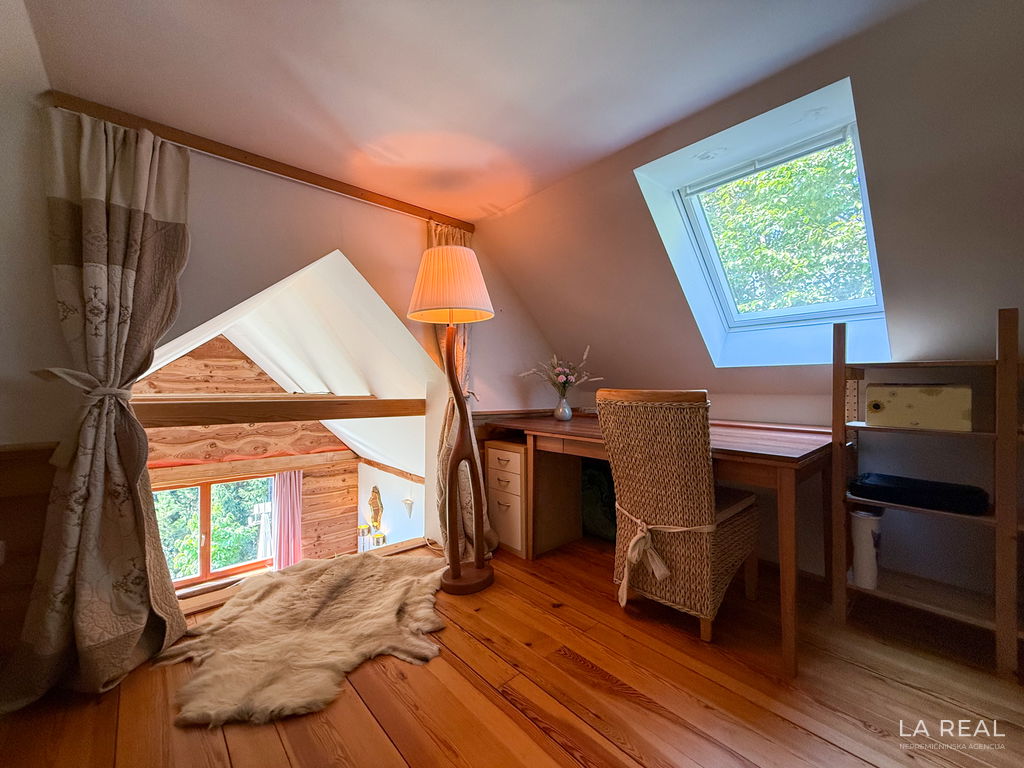 The surroundings of the house are sunny and include a lawn with a flat part, about 400 m2 of gardens (4 gardens), about 600 m2 of orchard, about 5000 m2 of forest and a garden with high beds, ready to plant your favorite plants.The estate is cultivated in an ecological way.