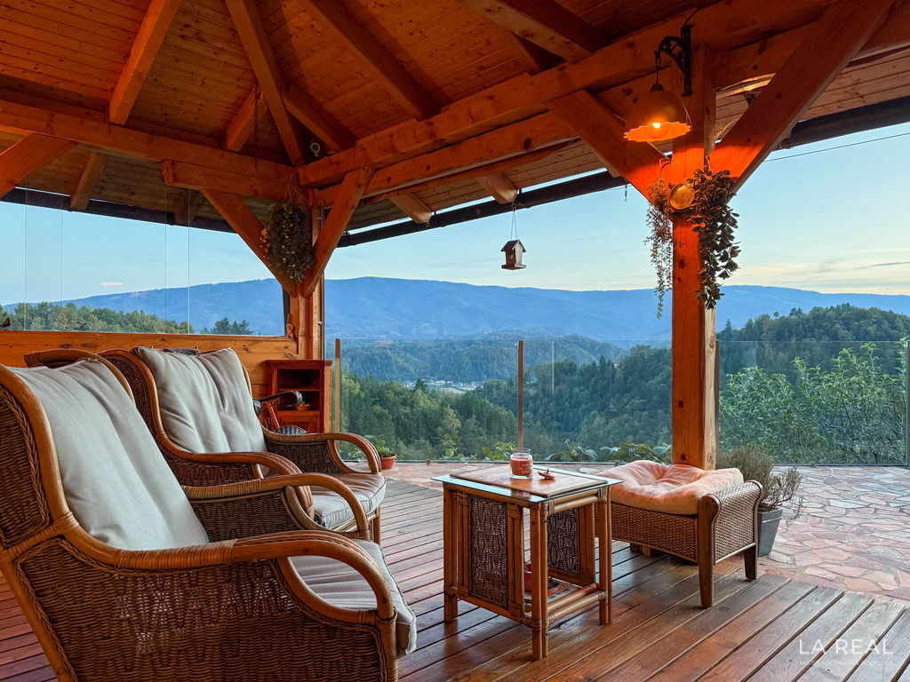 The house is located in a discreet location next to the forest with no close neighbors, above Bresternica with a wonderful view of Pohorje.The location of the estate allows for a perfect fusion with nature, even though you are only 15 minutes away from the hustle and bustle of the city. It was built and furnished with natural materials, which gives it a pleasant and warm feeling. Many handmade and unique creations decorate both indoor and outdoor spaces.