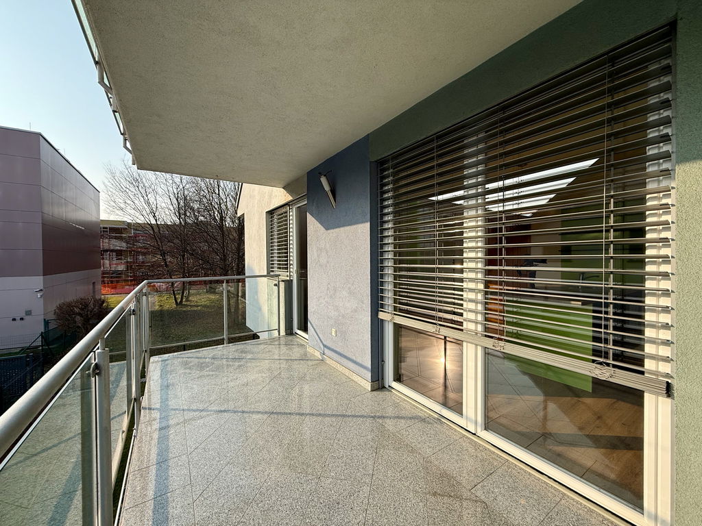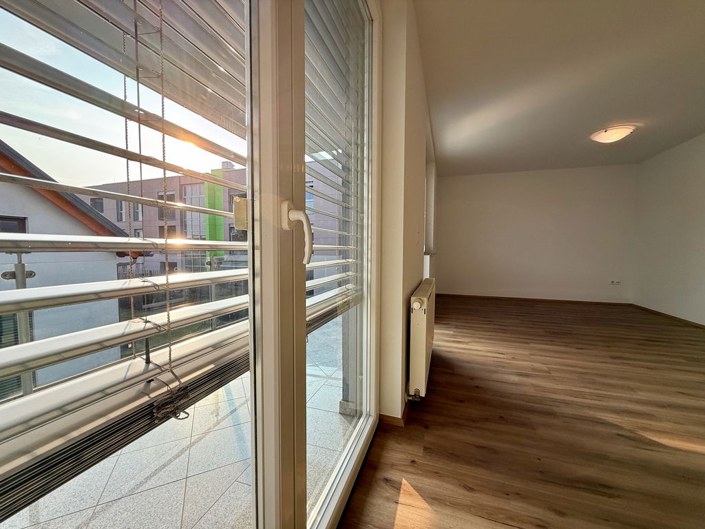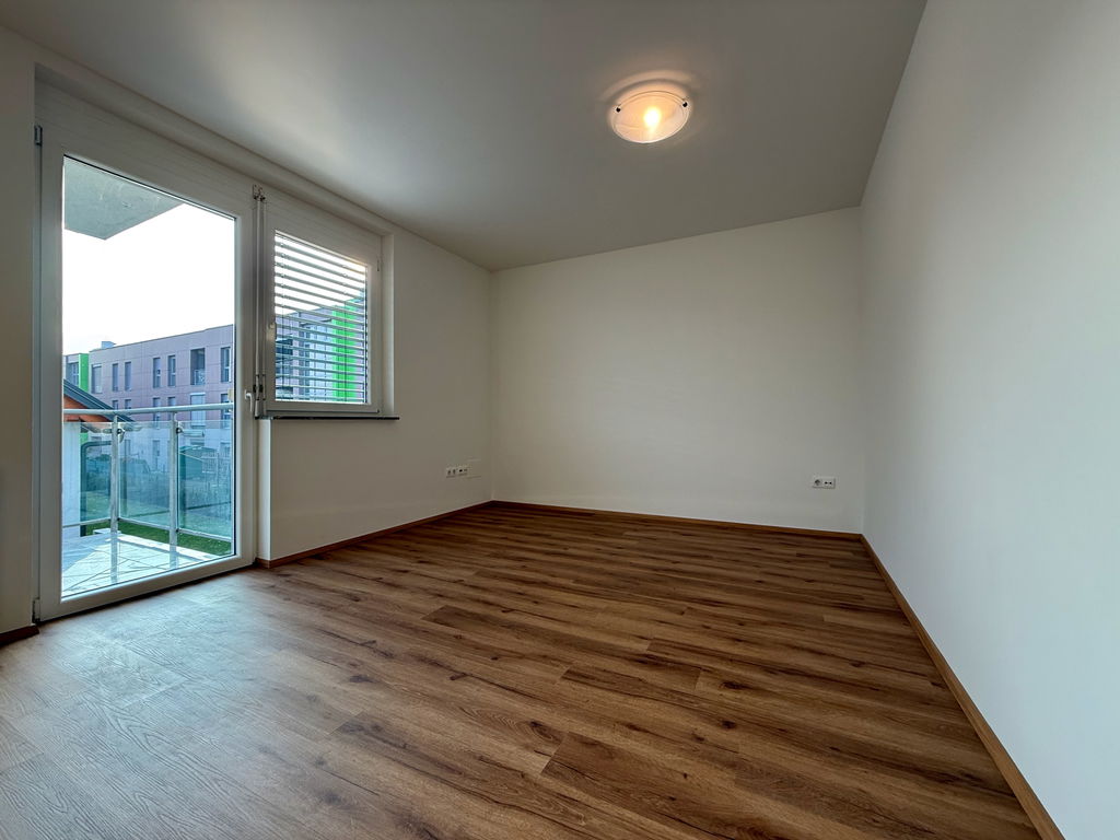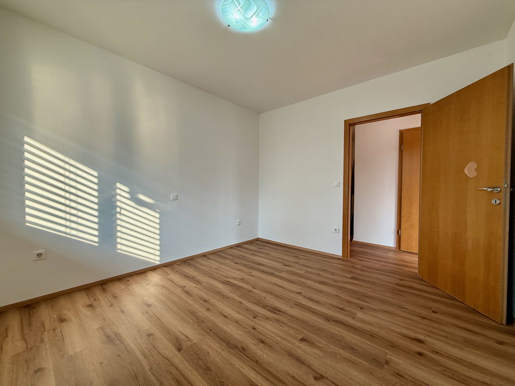 - Razporeditev: predsoba/hodnik, kuhinja z jedilnico in dnevno sobo, balkon, spalnica, kopalnica in ločena shramba
