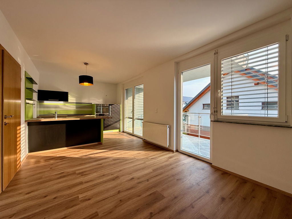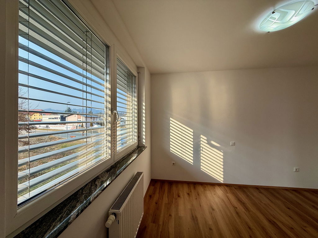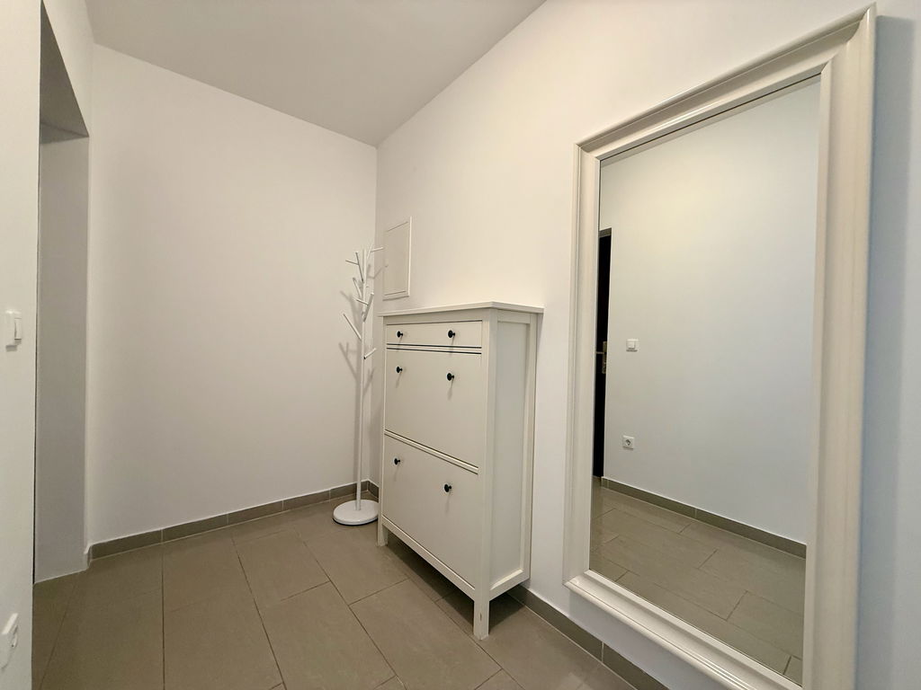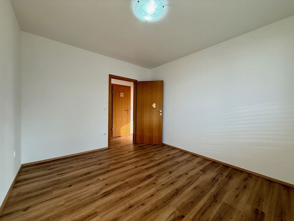 - Razporeditev: predsoba/hodnik, kuhinja z jedilnico in dnevno sobo, balkon, spalnica, kopalnica in ločena shramba