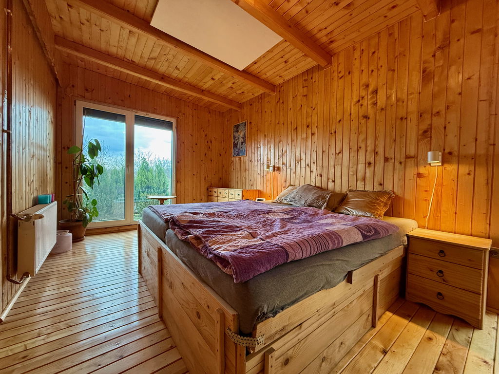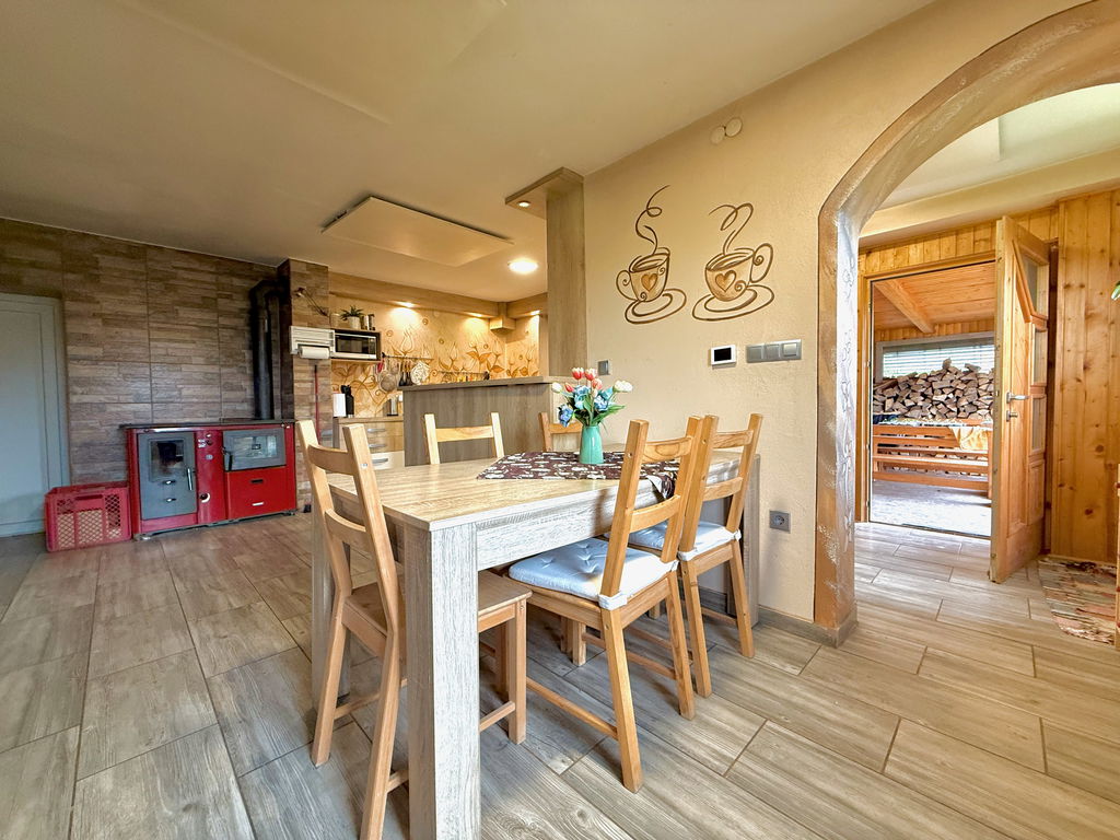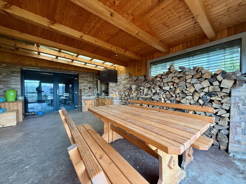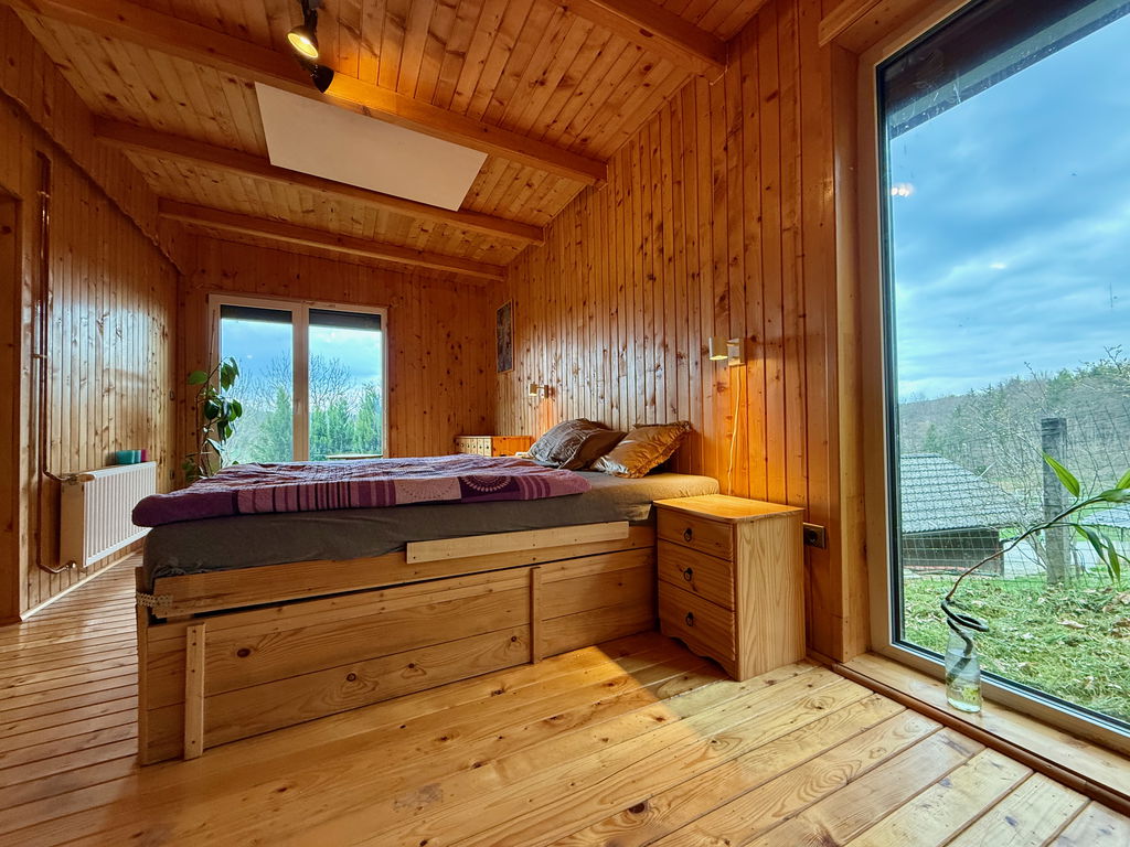 - Ogrevanje: IR paneli in peč na trda goriva – drva