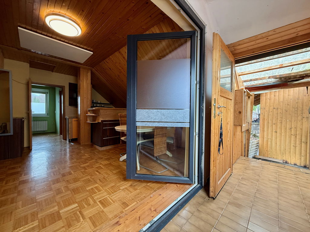 Zgornji Porčič, Sveta Trojica v Slov. goricah: Prodamo hišo na pobočju ob gozdu, v kateri ima vsaka etaža lasten vhod. Mirno okolje, blizu mesta Lenart. Parcela na kateri stoji hiša je velikosti 821 m2 s pogledom na dolino. Zraven hiše stojita na parceli še garaža za en osebni avto in vrtna lopa.