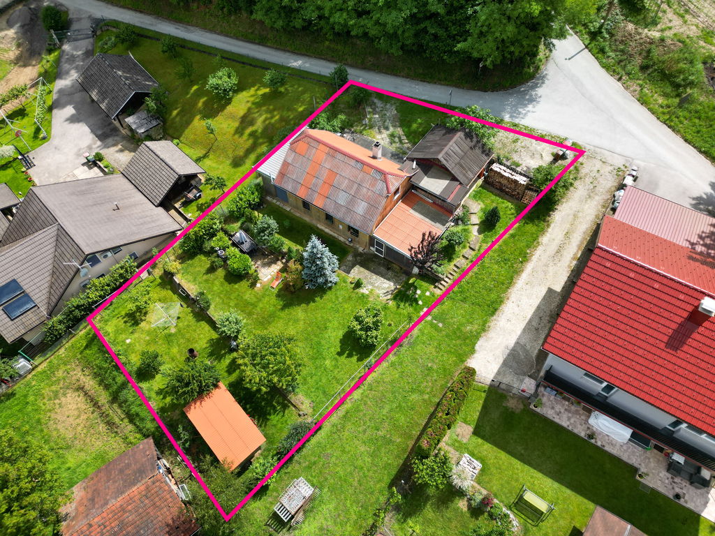 - Dodatno: na parceli stojita še vrtna lopa in garaža