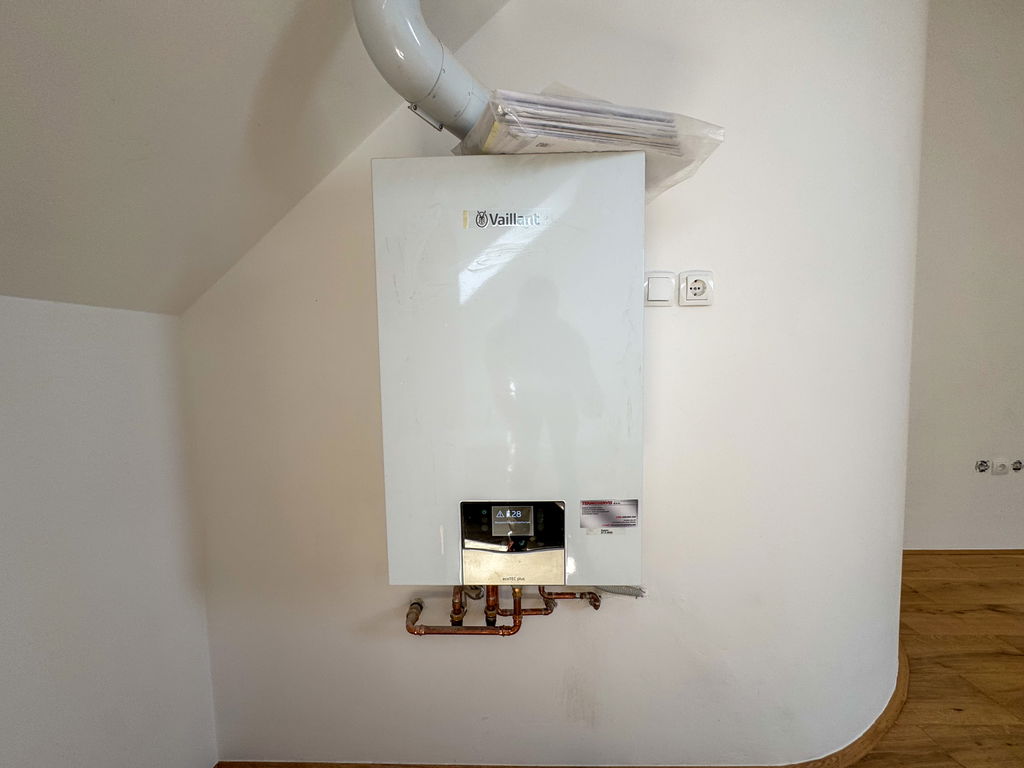 - Ogrevanje in sanitarna topla voda: Etažna plinska peč