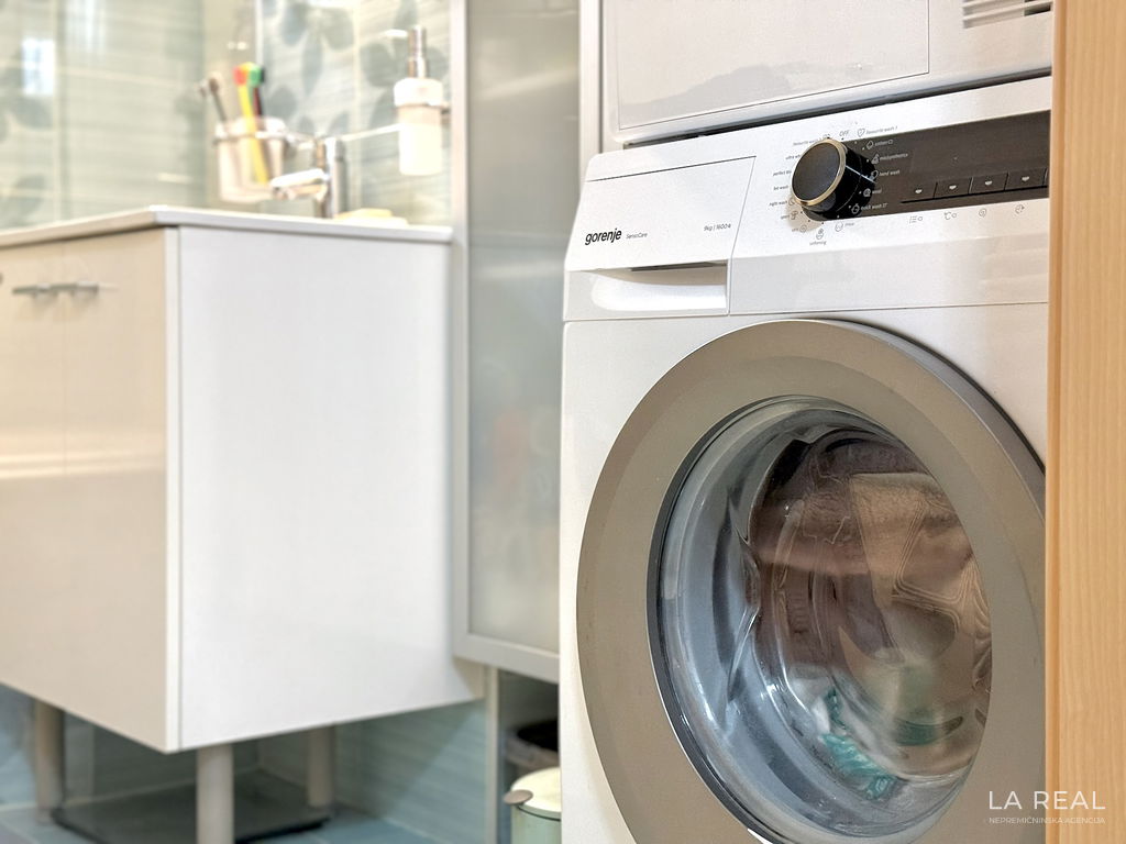 - Oprema: ostane, vključno z vsemi aparati, televizorjem, pralnim in sušilnim strojem (2020)