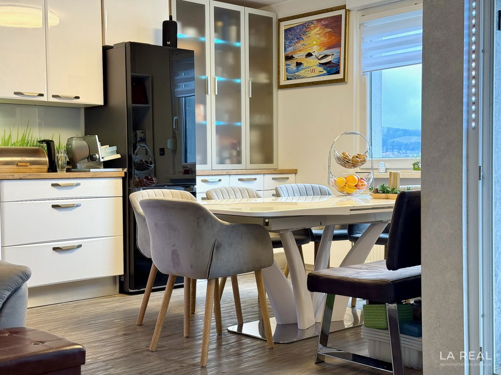 - Kuhinja: izdelana po meri, opremljena s kvalitetnimi aparati Gorenje.