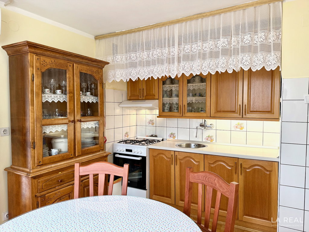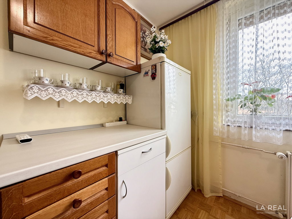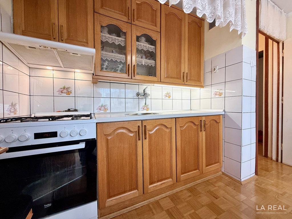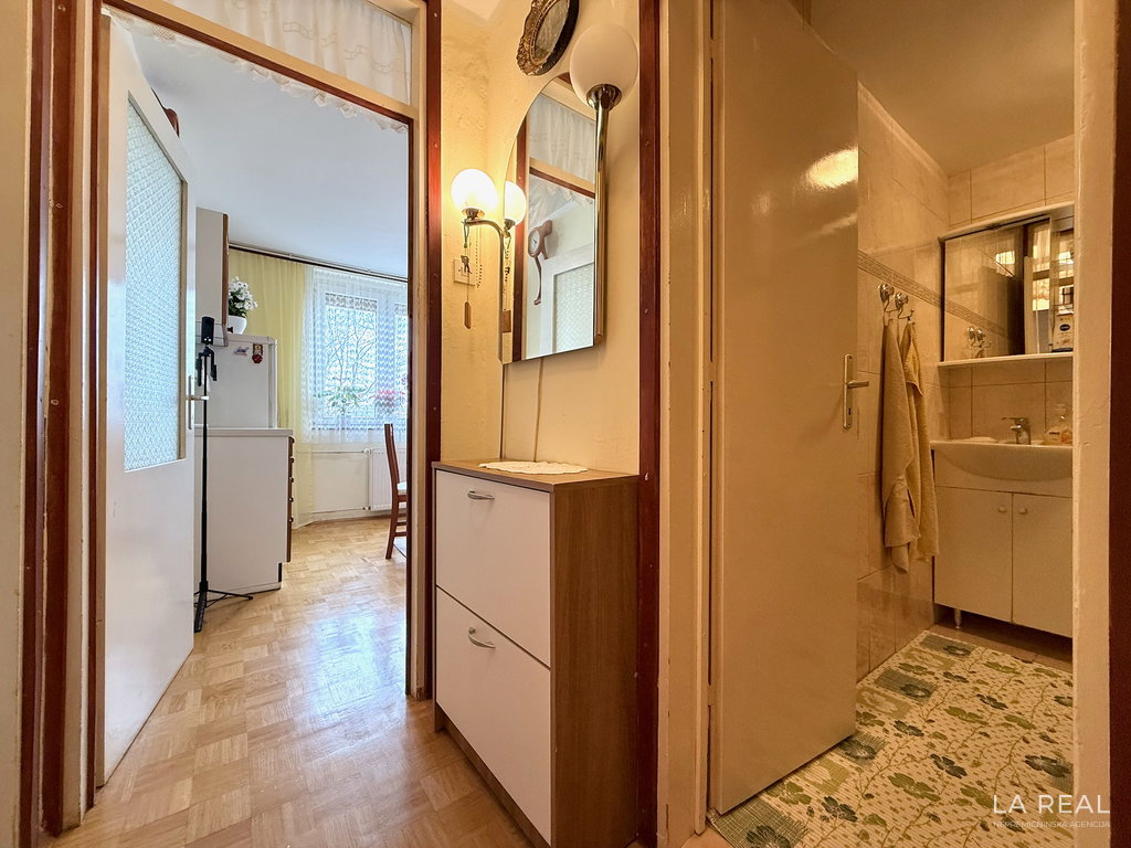 - Razporeditev: predsoba, dnevnobivalni prostor z izhodom na zastekljen balkon, spalnica, kopalnica, kuhinja z jedilnico, kletna shramba