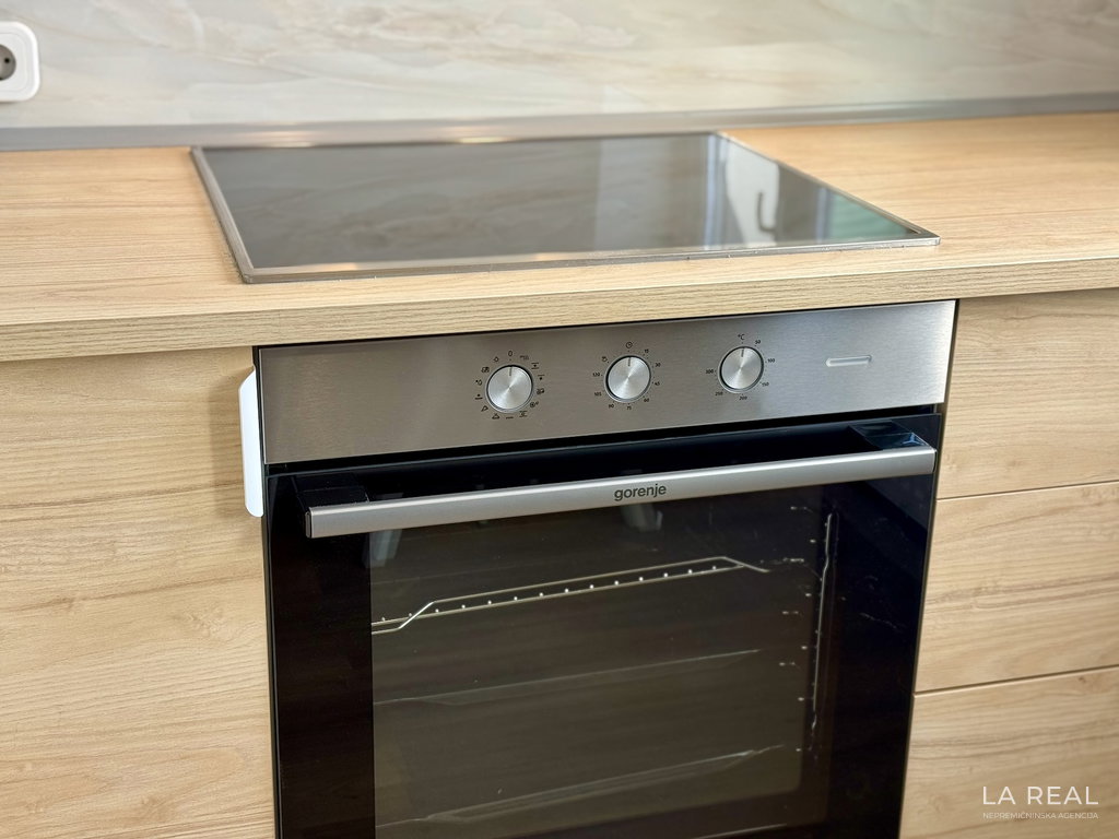 Oprema: kuhinja z aparati, dnevni regal, omara, nočne omarice, kopalnica, predsoba, jedilna miza s stoli